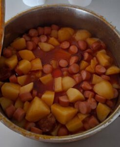 Gegen 14 Uhr war dann Zeit für eine wohlverdiente Mittagspause. Zu Kartoffelsalat und Brot gab es Paprika-Kartoffeln, oder wie das Gericht auf Ungarisch heißt: Paprikás krumpli. Nach der harten Arbeit schmeckte es allen besonders gut – und die Stärkung tat auch Not, denn danach ging es in den Endspurt.
