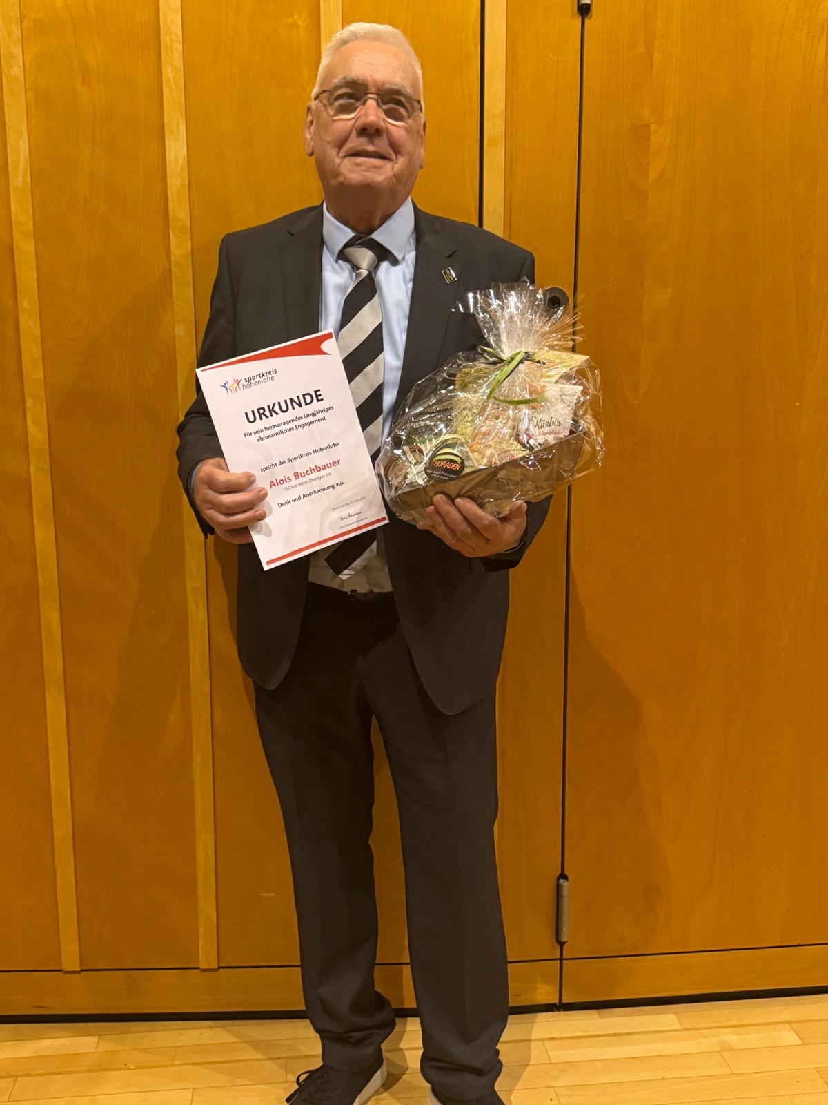 Eine ganz besondere Auszeichnung erhielt Alois Buchbauer, der für sein herausragendes ehrenamtliches Engagement über mehrere Jahrzehnte hinweg geehrt wurde.