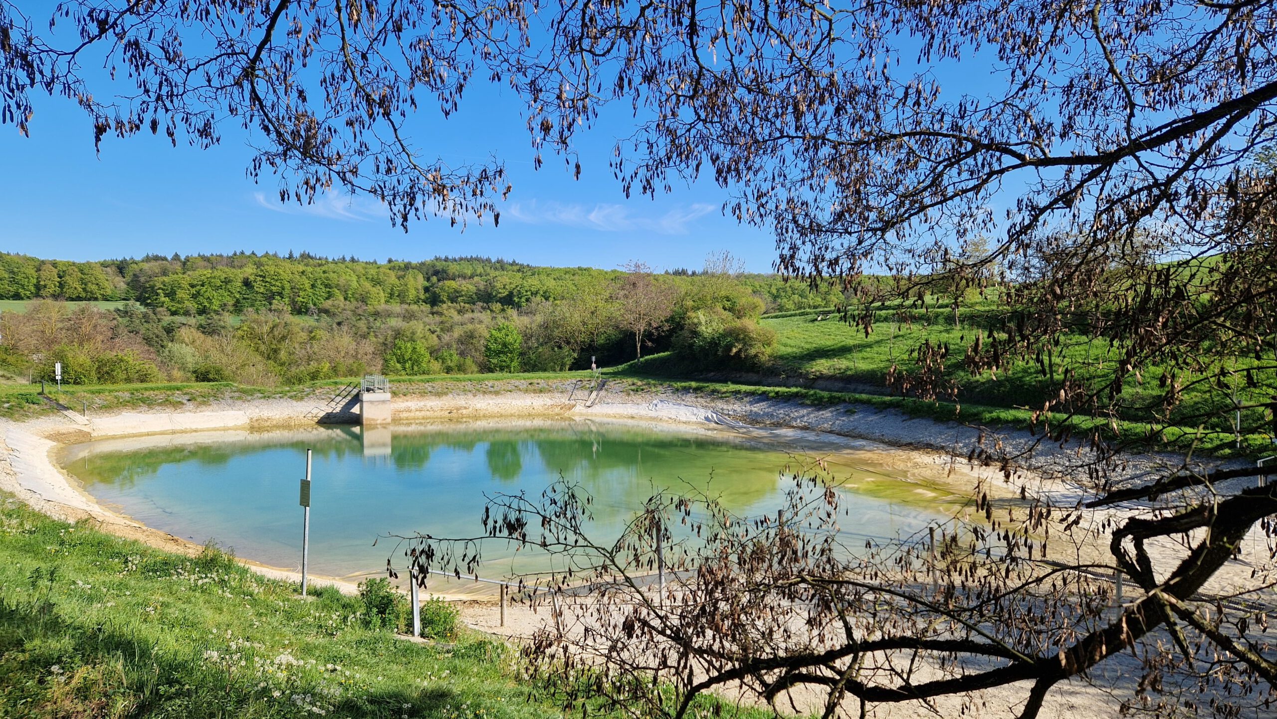 Nach einem moderaten Anstieg erreichten wir den Bereich oberhalb des Steinbruchs – und damit ein echtes Kleinod: den Laibacher Badesee. Der rund 2.500 Quadratmeter große See wird durch Sickerwasser gespeist und besticht durch seine klare Wasserqualität sowie seine ruhige Lage. Besonders in den Sommermonaten ist er ein beliebter Treffpunkt für Einheimische und Besucher.