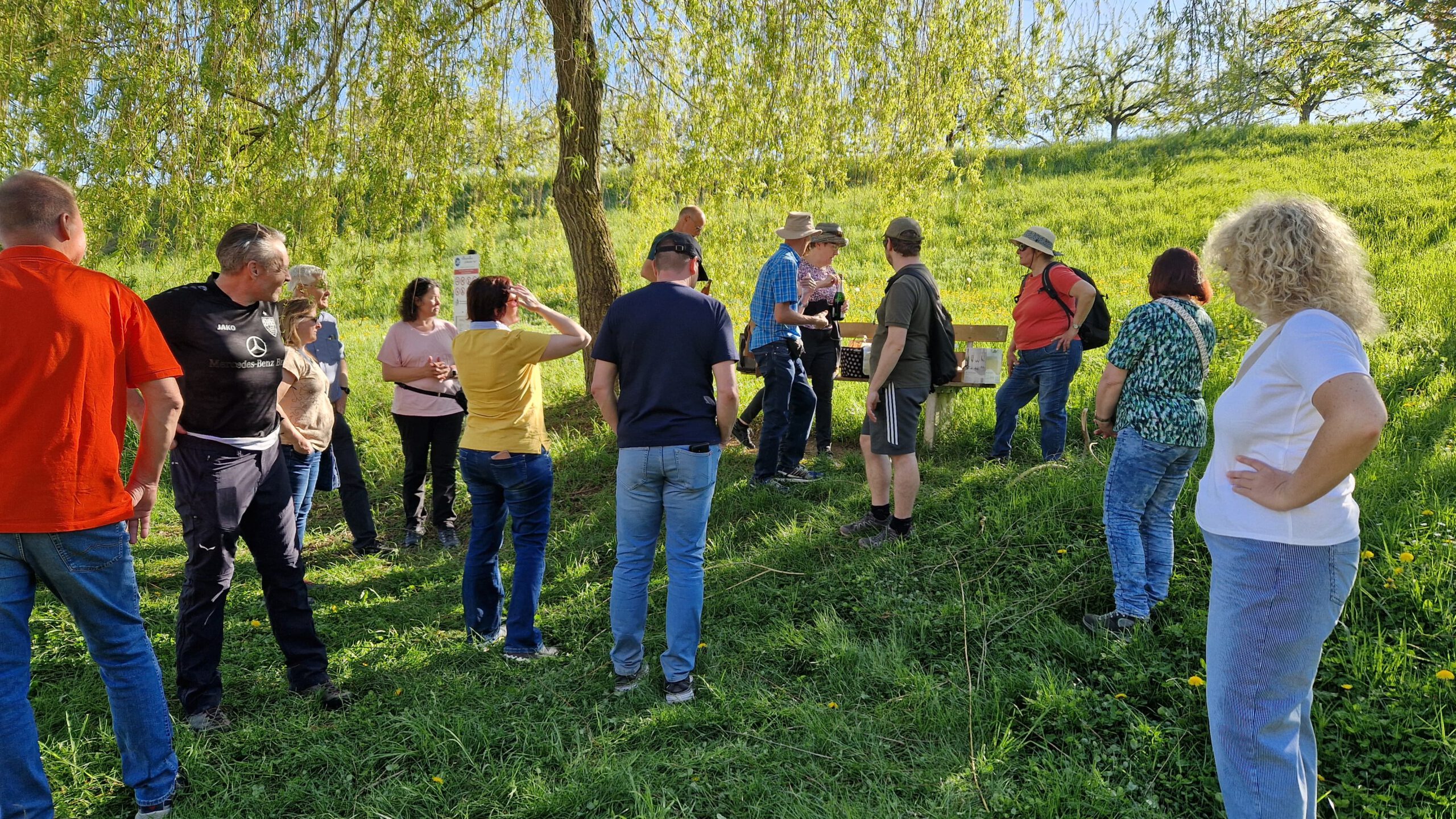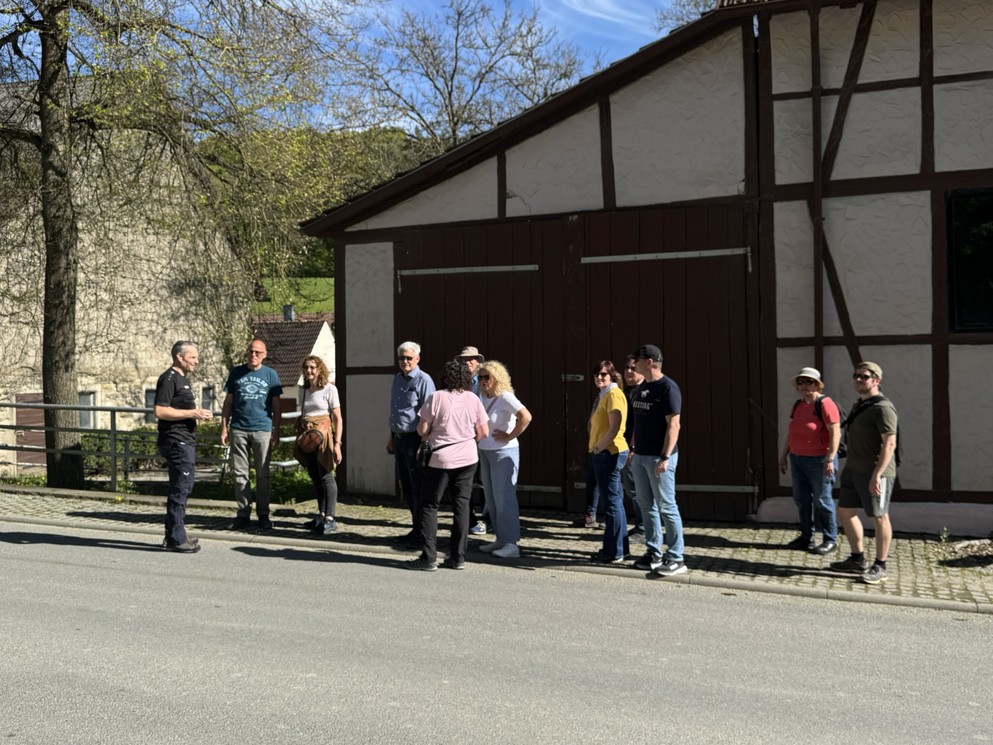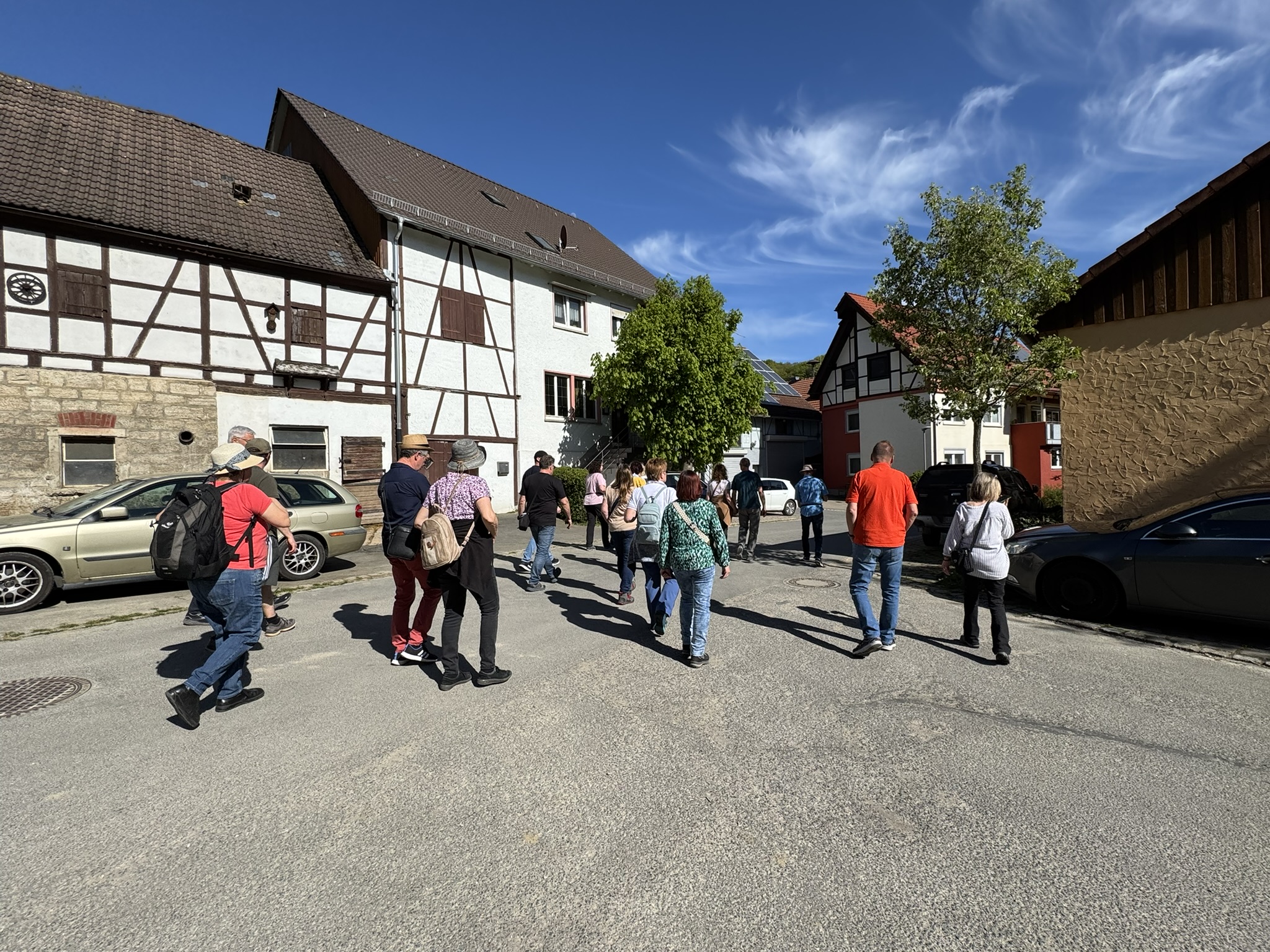 Bei strahlendem Sonnenschein und blauem Himmel machte sich unsere Gruppe auf den Weg zu einer etwa fünf Kilometer langen Wanderung rund um das idyllische Laibach, einen kleinen Ortsteil der Gemeinde Dörzbach im Hohenlohekreis. Eingebettet in die sanfte Landschaft der Kocher-Jagst-Ebenen und begleitet vom gleichnamigen Bach, präsentierte sich die Region von ihrer schönsten Seite – abwechslungsreich, naturnah und voller kleiner Entdeckungen.