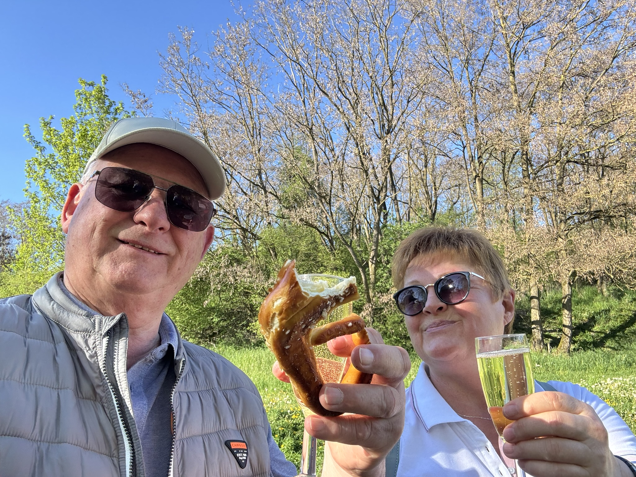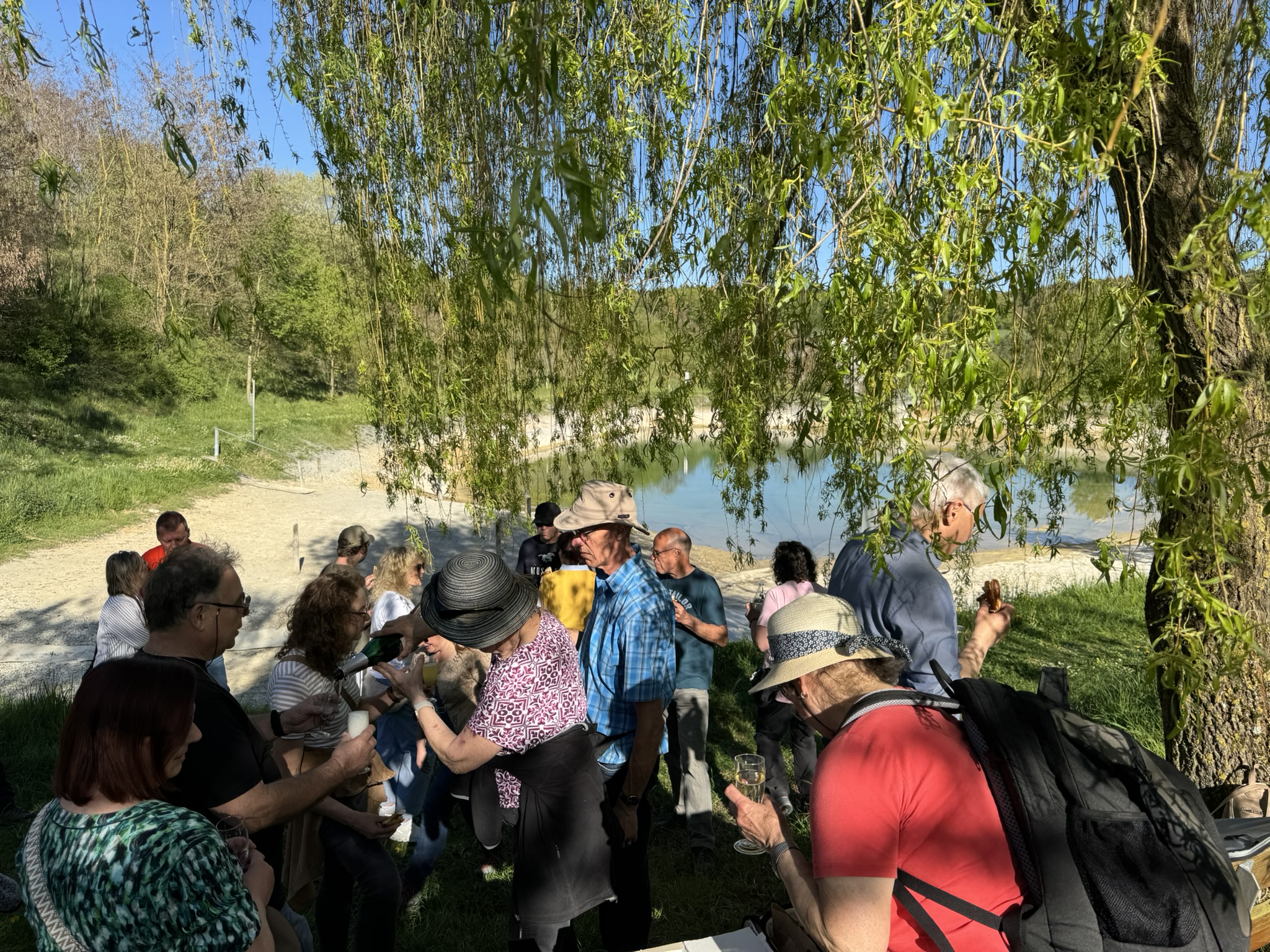 Hier legten wir unsere wohlverdiente Pause ein. In geselliger Runde genossen wir ein Gläschen Sekt sowie weitere erfrischende Getränke. Natürlich durften auch die klassischen Butterbrezeln nicht fehlen – eine perfekte Stärkung inmitten dieser schönen Naturkulisse. Dieser Zwischenstopp entwickelte sich schnell zu einem der Höhepunkte der Wanderung.