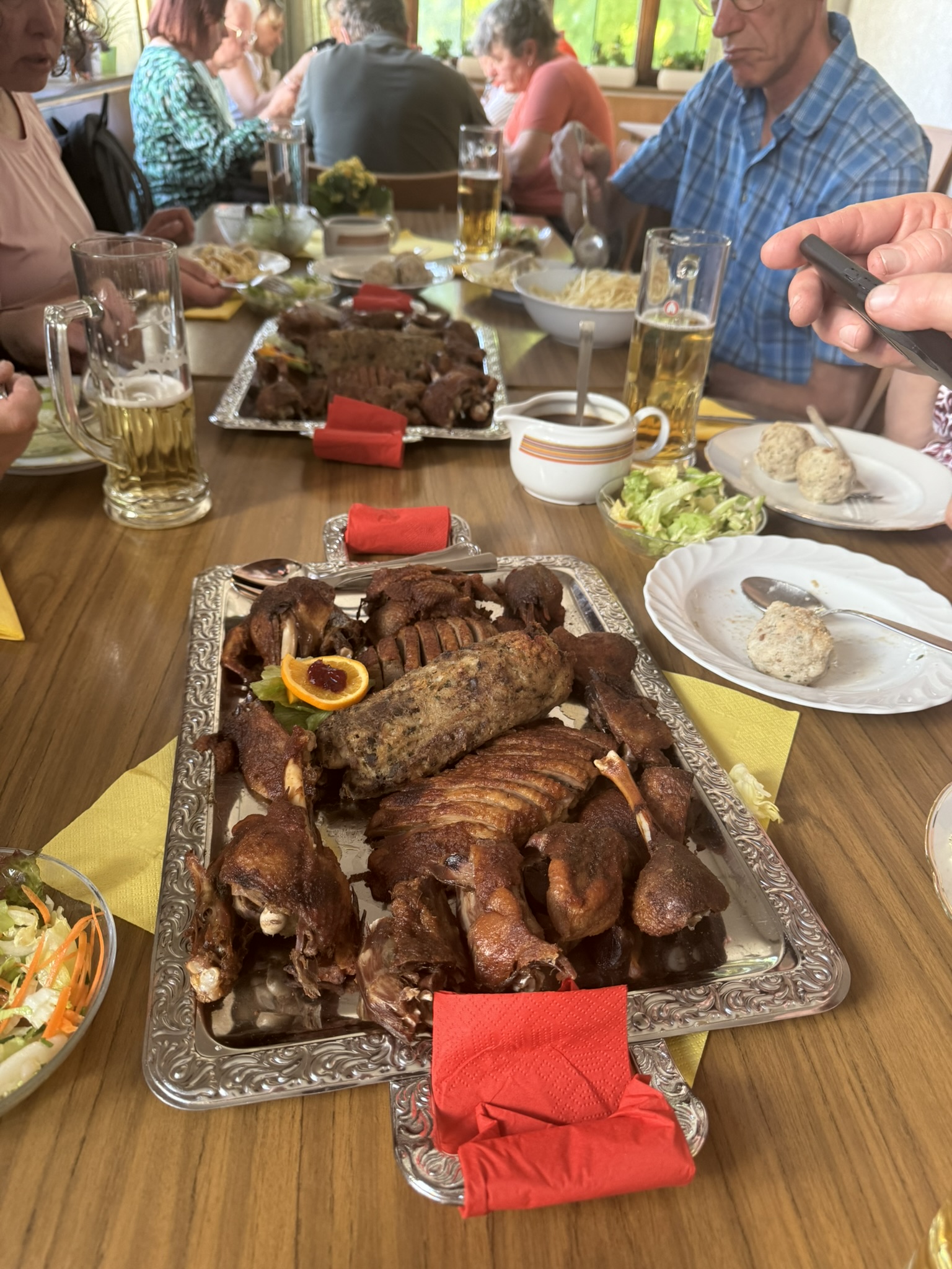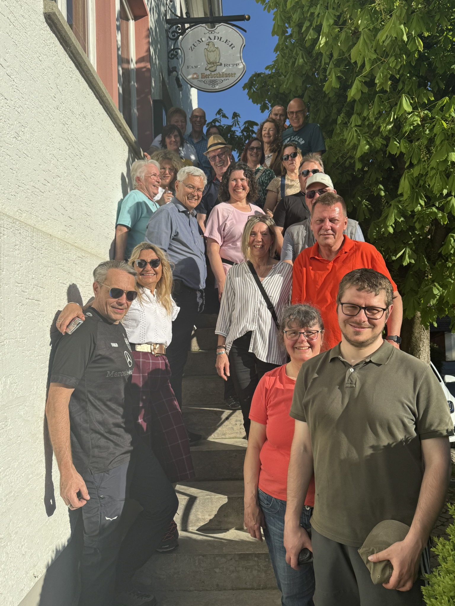 Zum Abschluss der Tour trafen wir uns am Gasthof Adler zu einem gemeinsamen Gruppenfoto – ein schöner Moment, der diesen gelungenen Tag festhielt. Im Anschluss kehrten wir dort ein und ließen die Wanderung bei einem gemütlichen Entenessen ausklingen. In geselliger Atmosphäre und bei regionaler Küche konnten wir die Erlebnisse des Tages noch einmal Revue passieren lassen.